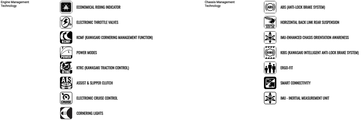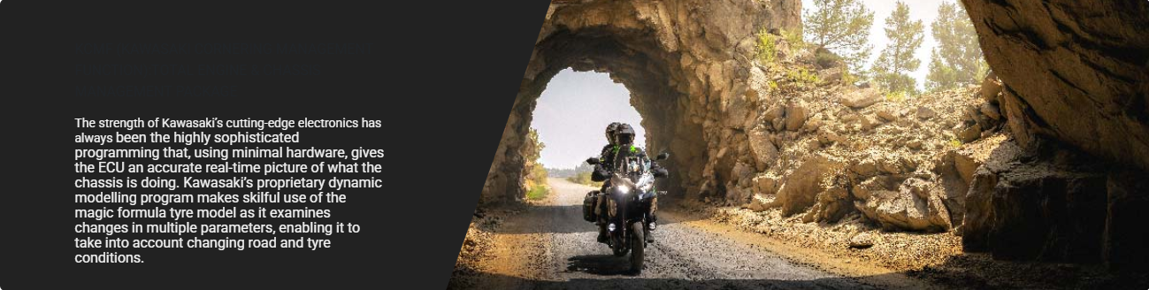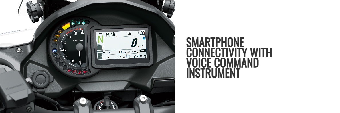 Developed by Kawasaki specifically for on-road excitement, the Versys’ In-Line Four engine receives an increase in displacement from 1,043 cm3 to 1,099 cm3. This increases maximum power from 120 PS to 135 PS. Greater mid-high rpm torque makes the riding experience even more enjoyable, while higher power output at high rpm makes the engine roar for an aurally and physically enjoyable ride. Overall, with a more powerful and more refined engine, the new Versys models perform well in a variety of on-road riding